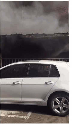 朋友圈转发的火灾现场视频也可以看到,火灾发生时,黑色的浓烟滚滚上升,大约有几十米高,可以想见车棚内的情况的确很麻烦。