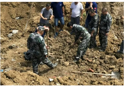 26日上午9时,阜阳蓝天救援队的阜阳民兵应急机动直属队接警方电话,三合镇有一老人在施工现场失联,疑似被掩埋,请求协助搜寻。到达现场后经过研判锁定位置在颍州区三合镇辖区的一条水沟边后进行挖掘,全力以赴搜